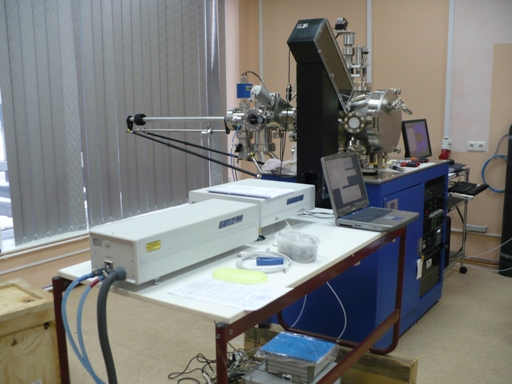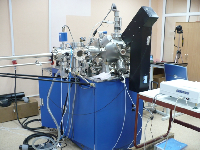 Установка PLD изготовленная американской компанией SVTA. Установка имеет в своем составе манипулятор мишеней на 6 позиций с вращением и индексацией всех мишеней, манипулятор подложек для работы с образцами до 25 мм в диаметре, их вращением и нагревом до 850°С в атмосфере кислорода, оптику ввода лазерного излучения, загрузочную камеру с доковой станцией на 4 подложки и 4 мишени, вакуумную систему откачки на основе турбомолекулярного вакуумного насоса, высоковакуумный для мишеней 25 мм в диаметре и ВЧ-блок питания. Особенностью и хорошей «фишкей» установки является наличие полнооткрываемой вакуумной двери на переднем торце вакуумной камеры, что позволяет осуществлять полный доступ ко всем внутренним компонентам камеры и в то же время поддерживать в камере глубокий вакуум до 5 х 10-9 Торра и наличие запасного вакуумного порта для ввода излучения второго лазера.