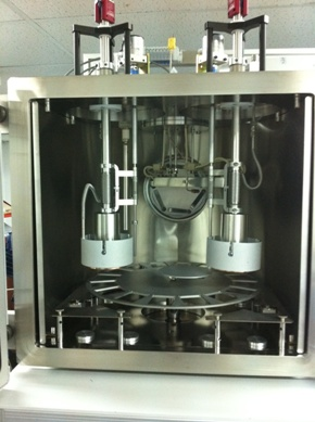 Установка модели TFSP-840 изготовленная израильской компанией VST. Установка имеет в составе два диаметрами мишеней 100 мм и ВЧ источник питания на 1 кВт. Откачка полностью сухая и состоит из турбомолекулярного насоса на магнитной подвеске компании Shimadzu и спирального насоса японской компании Anest Iwata. Подложкодержатель плоского типа с возможностью размещения 16-и подложек из поликора или другого материала. Для предочистки подложек используется электрод с подачей постоянного напряжения, который создает область плазменного разряда, что позволяет мягко очистить поверхность подложек перед напылением от остаточных паров воды и углеводородов.
