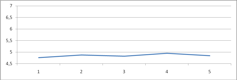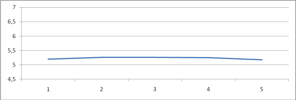При напылении резистивных пленок была использована стандартная апертурная маска, форма которой за 4-е тестовых напыления была правильно подобрана, что привело к получению однородности напыления +/- 1,75%, далее маска была еще доработана, что привело к получению однородности +/- 1,3%. Ниже показаны кривые измеренных параметров поверхностного сопротивления 4-х последовательных образцов при подборе маски: