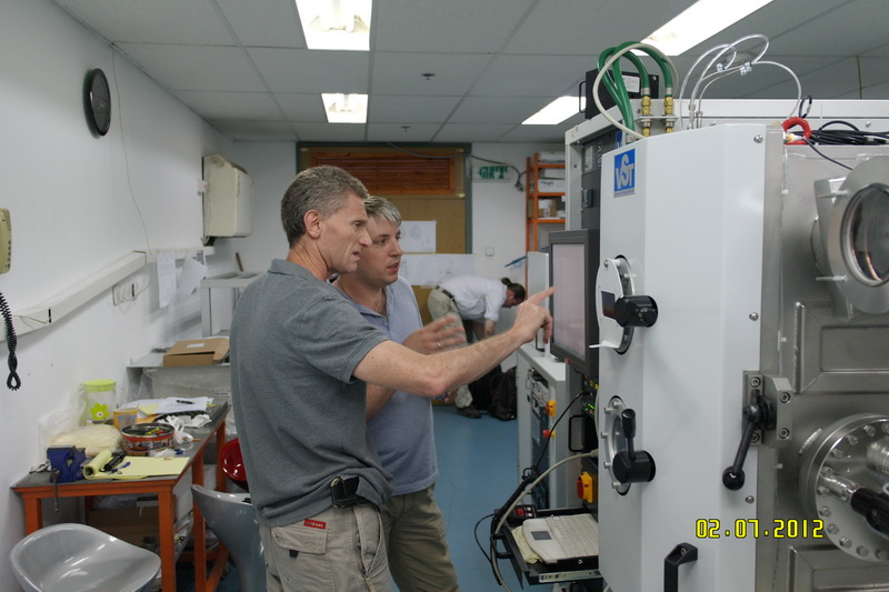 Установка модели TFDS-462B изготовленная израильской компанией VST. Установка имеет в составе электронно-лучевой испаритель на 6 карманов, ионную пушку и специальный подложкодержатель с возможностью охлаждения образцов до -30oС и поворотом образца на угол ±90o по отношению к источнику. Откачка полностью сухая и состоит из криогенного насоса и спирального насоса японской компании Anest Iwata. Установка имеет загрузочную камеру для подачи образцов, в которой образцы могут подвергаться стадии оксидации поверхности.